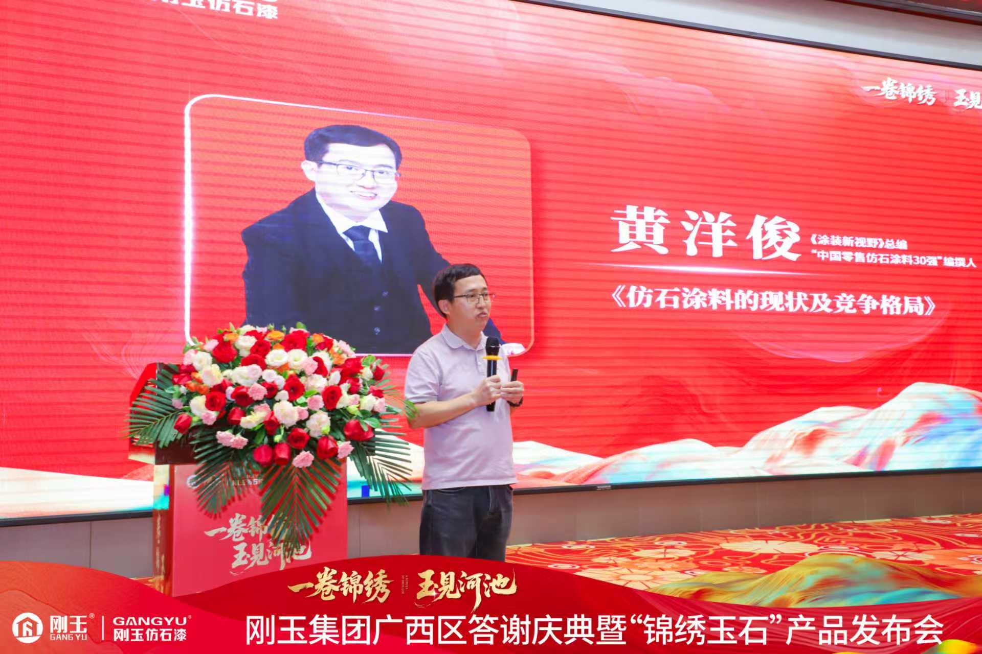 《涂装新视野》总编黄洋俊则基于详实数据,深入剖析了仿石涂料的市场格局与发展机遇。他指出,广西仿石漆市场潜力巨大,刚玉依托"腻子+仿石"双品类的扎实布局,有望通过产品升级与新渠道赋能,迅速抢占市场先机。
