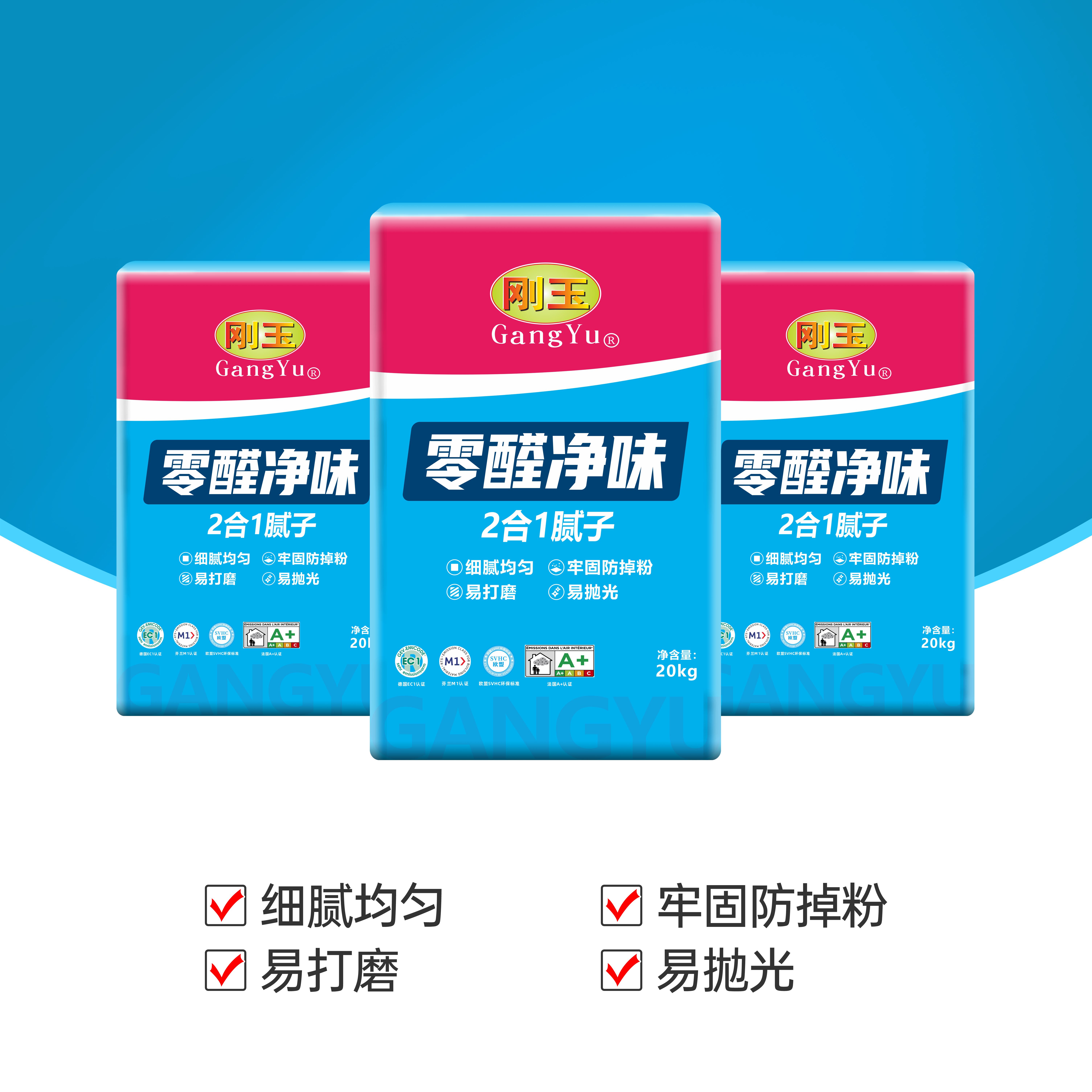 产品特点·细腻均匀·牢固防掉粉·易打磨·耐水耐械·粘接力强·施工便捷
